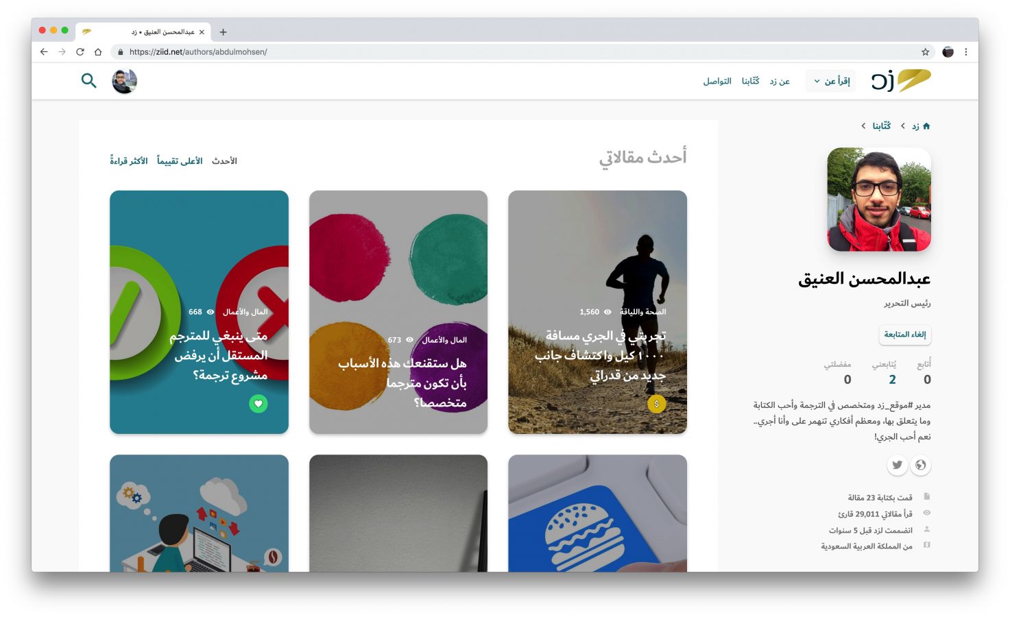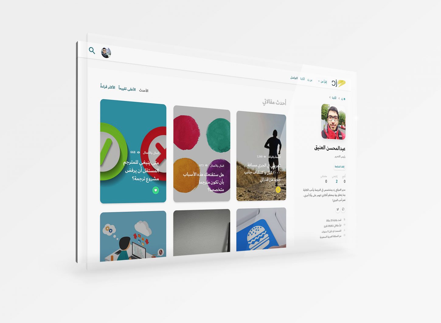 نحتفي دائما في زد بالكتاب المؤثرين والنشطين ونحرص أن يعرفهم زوار الموقع، فكثرة قراءات الكاتب ومقالاته تعني كثرة الظهور في صفحات الموقع.