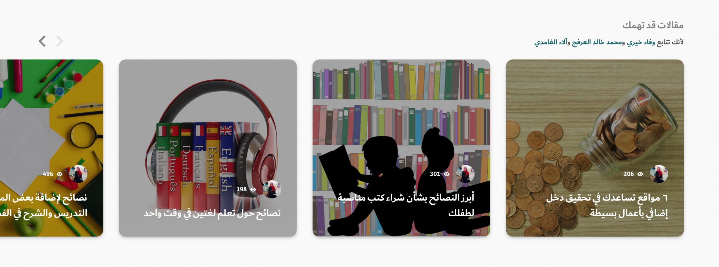 هذا القسم يفهم سلوكك في الموقع ويعرض مقالات تشبه المقالات التي تقرأها عادة، وكذلك يعرض لك مقالات الكتاب الذين تتابعهم ومفضلاتهم.